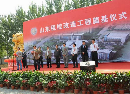 10月11日上午,山東稅校改造工程舉行了奠基儀式。集團公司董事長徐鵬強陪同劉偉副市長參加奠基儀式并講話。出席儀式的領導還有,山東省國稅局黨組書記、局長胡金木,山東省國稅局黨組成員、總會計師孟慶啟,濰坊市政協副主席杜國忠,濰坊市紀委副書記、監察局局長陳本林,濰坊市政府副秘書長安寧。