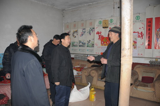 1月18日上午,集團公司監(jiān)事會主席、黨委副書記、紀(jì)委書記滕忠斌,副總經(jīng)理兼駐臨朐幫扶領(lǐng)導(dǎo)小組組長穆乃杰,在臨朐城關(guān)街辦有關(guān)領(lǐng)導(dǎo)及殷家河村兩委領(lǐng)導(dǎo)陪同下,走訪慰問幫扶村的革命家庭、長壽家庭、孤寡家庭及困難家庭等十個家庭戶代表,并送去面粉和食用油,表達集團公司對幫扶村村民的新春祝福和美好祝愿。集團公司總部有關(guān)部門、第九分公司有關(guān)人員和幫扶領(lǐng)導(dǎo)小組成員參加了走訪慰問活動。 ![]() 走訪孤寡老人 ![]() 走訪革命家屬家庭 ![]() 走訪96歲壽星戶