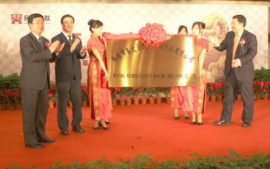1月22日上午,由集團公司控股設立的濰坊市奎文區(qū)民興小額貸款有限公司,在濰坊國際金融大廈舉行了隆重的開業(yè)儀式。參加開業(yè)慶典儀式的有山東省財政廳副廳長龐敦之及民生銀行山東省分行行長馬琳,濰坊市人民政府副市長夏芳晨及市金融辦、市財政局、市銀監(jiān)局、市人民銀行等市直單位、部門負責人,奎文區(qū)委副書記、區(qū)長李輝,副區(qū)長賈平及奎文區(qū)金融辦負責人,市工商銀行、中國銀行、交通銀行、農(nóng)信聯(lián)社、中信銀行、招商銀行、農(nóng)業(yè)銀行、建設銀行、濰坊銀行、華夏銀行、民生銀行、浦發(fā)銀行等市銀行系統(tǒng)負責人,駐奎文區(qū)的金融機構中國銀行、工商銀行、建設銀行、濰坊商行、農(nóng)業(yè)銀行、新華路農(nóng)信聯(lián)社等負責人,泰華集團、博悅地產(chǎn)、東方鋼管、中百集團等集團公司重要客戶主要負責人,華和擔保公司、巨鑫擔保公司、水建總公司、恒泰擔保公司、泰翔商貿(mào)公司、奇正商務咨詢公司、博揚投資咨詢公司、吾愛設計有限公司、南京龍蟠石化濰坊分公司、速比達連鎖汽修總經(jīng)理等重要相關客戶,濰坊市建設局局長李廣東及局領導班子全體、局機關各科室主要負責人、局屬各單位主要負責人,集團公司董事長、民興小額貸款公司董事長徐鵬強,民興小額貸款公司股東單位負責人,集團公司高管層領導滕忠斌、李坤明、姜建魯、穆乃杰、張學智、閆鵬,總經(jīng)理助理張修雙、譚瑞明,總部部門負責人、各基層單位(子公司)經(jīng)理書記共計170余人參加了開業(yè)慶典儀式。 ![]() 市金融辦主任李傳順宣讀省金融辦同意公司設立方案的批復 ![]() 董事長徐鵬強匯報公司籌建情況 ![]() 奎文區(qū)區(qū)委副書記、區(qū)長李輝致辭 ![]() 濰坊市副市長夏芳晨講話 ![]() 省財政廳廳長龐敦之、民生銀行省分行行長馬琳、副市長夏芳晨揭牌