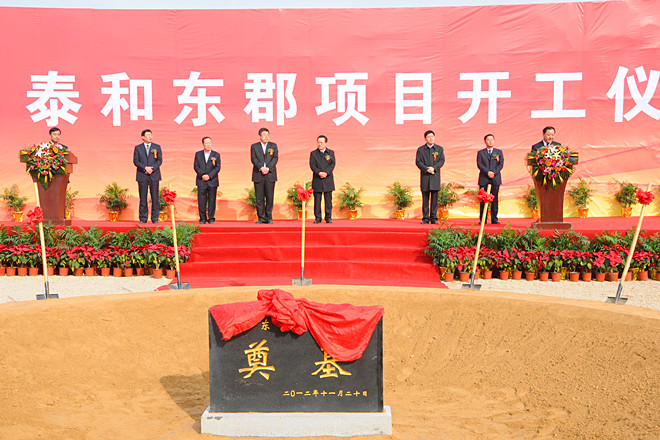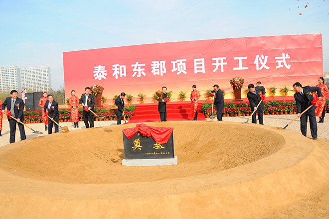 2012年11月20日上午,由集團(tuán)泰和公司開發(fā)的“泰和東郡”項(xiàng)目舉行了隆重的開工奠基儀式。集團(tuán)高管層領(lǐng)導(dǎo)徐鵬強(qiáng)、李坤明、姜建魯、穆乃杰、張連悅、閆鵬、劉雁冰出席開工奠基儀式。出席開工奠基儀式并在主席臺就位的領(lǐng)導(dǎo)和嘉賓有濰坊市委常委、高新區(qū)黨工委書記、管委會主任趙志遠(yuǎn),高新區(qū)黨工委副書記、管委會副主任陳甲才,高新區(qū)黨工委委員、管委會副主任兼經(jīng)發(fā)局局長曲志剛,高新區(qū)黨工委委員、黨政辦公室主任唐偉,集團(tuán)董事長徐鵬強(qiáng),山東海王銀河醫(yī)藥公司董事長孔憲俊,集團(tuán)副總經(jīng)理兼泰和公司總經(jīng)理姜建魯。集團(tuán)全體中層以上人員、第四分公司部分管理人員參加了開工奠基儀式。開工奠基儀式由高新區(qū)黨工委委員、管委會副主任譚建民主持。