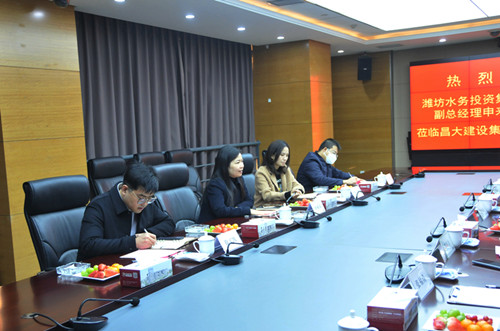 2023年1月10日上午,濰坊水務投資集團黨委副書記、副總經理申來鳳一行4人來集團公司訪問,集團總裁朱九洲陪同。賓主雙方就項目合作、國企混改等方面進行座談交流。 集團副總裁劉雁冰出席相關活動。 集團公司企業發展部總經理張煒、財務部總經理張福濤、法務部總經理高勇、三建公司總經理相有鵬參加相關活動。