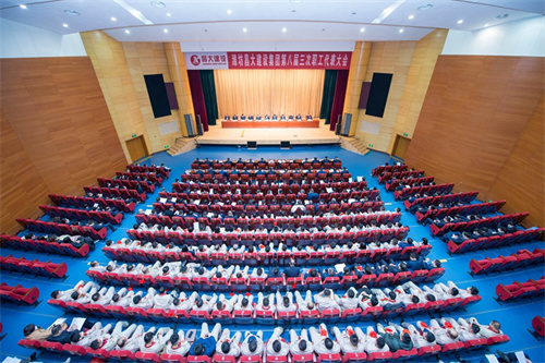 文化宮穹頂璀璨,碧華應(yīng)時。“團結(jié)凝聚力量、奮斗創(chuàng)造奇跡,挺膺擔當、不負時代、不負華年,全面推進企業(yè)高質(zhì)量發(fā)展!”的大幅標語催人奮發(fā)。上午九時,會議如期開幕。集團董事長徐鵬強、總裁朱九洲以及穆乃杰、姜建魯、房海、吳杰、劉雁冰、楊成國、惠守江、孟憲禮、王建波等高管出席大會并在主席臺就座。集團第八屆職工代表、列席代表,集團中層管理人員、2022年度受表彰的先進集體代表和先進個人以及總部全體人員共337人參加大會。