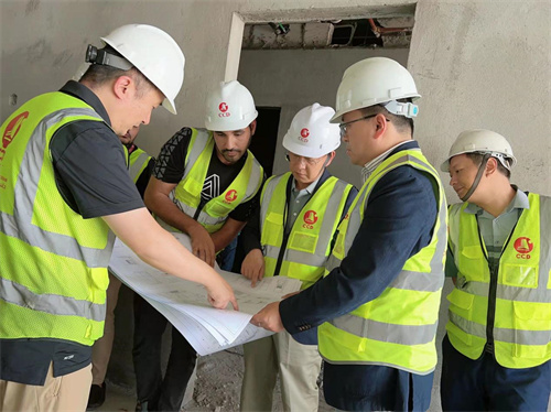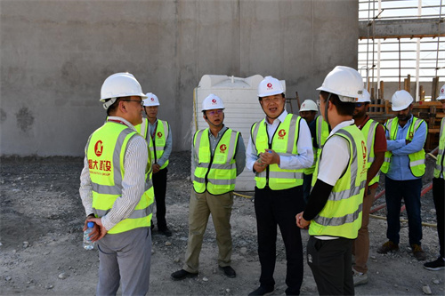 在多哈公司正在施工的水岸公寓6#樓及Simex物流園項目施工現場,徐鵬強董事長看望慰問項目施工人員,詳細了解工程施工進度、存在問題和員工生活等情況,并同現場一線人員座談交流。
