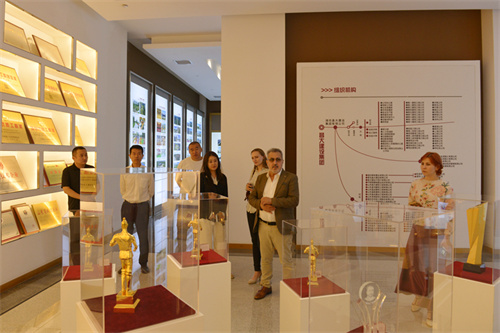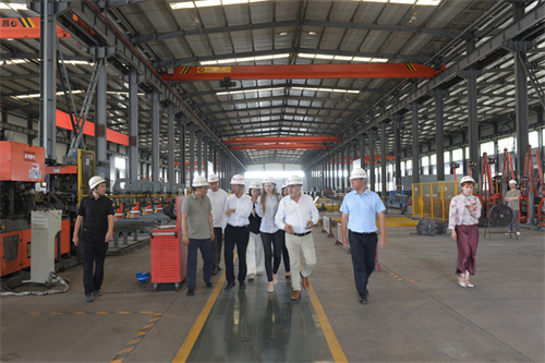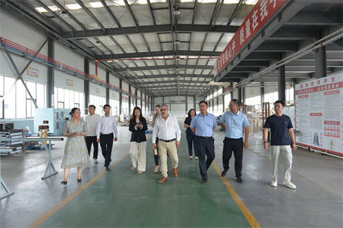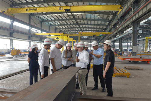 來訪期間,菲祖利先生一行四人先后參觀了昌大建科鋼筋加工、鋼結構以及預制構件車間,第三裝飾幕墻公司門窗加工車間,參觀了集團公司企業展廳、建筑史館。
