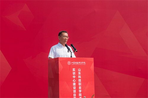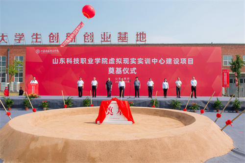 2025年7月17日上午,山東科技職業學院虛擬現實實訓中心項目奠基儀式在項目現場隆重舉行。學院黨委書記鄭德前,集團公司總裁朱九洲,山東省工程咨詢院黨組成員、副院長何健,山東建筑大學設計集團有限公司董事長、總經理李端杰,招商銀行濰坊分行黨委書記、行長潘兆強,學院黨委委員、紀委書記秦建坤,學院黨委委員、副校長徐曉雁、董傳民,學院副校長張振東出席奠基儀式。